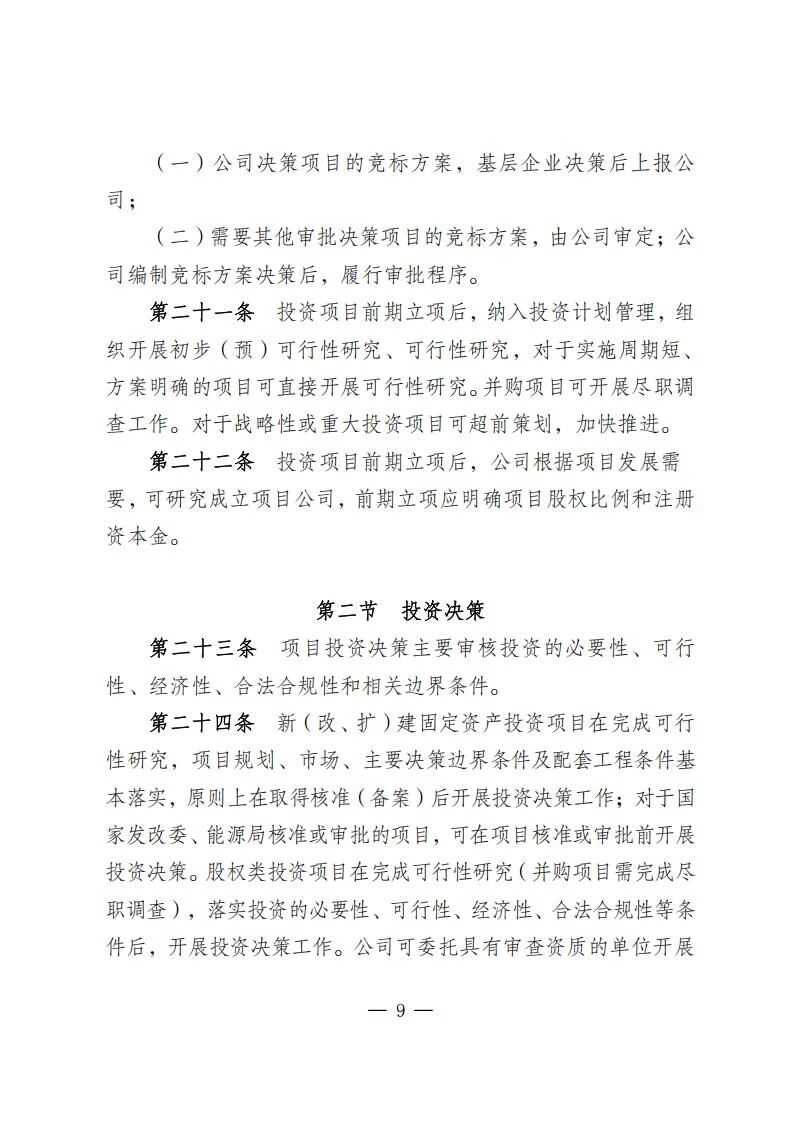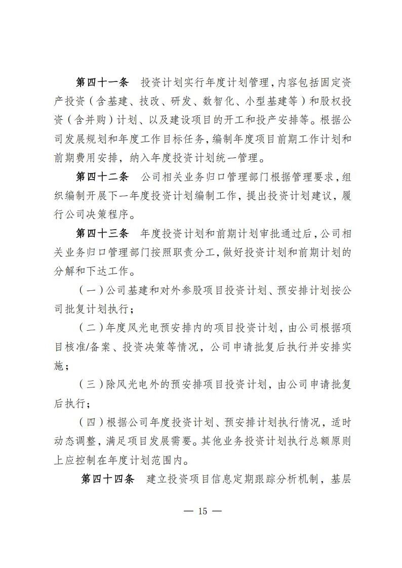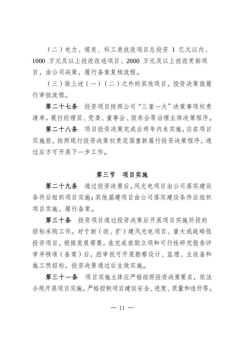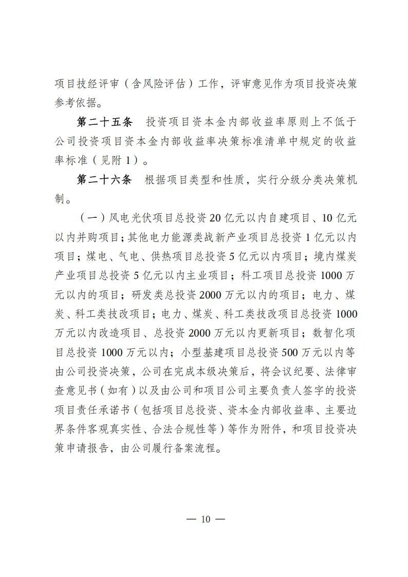 風電光伏項目總投資20億元以內自建項目、10億元以內并購項目施行分級分類決策機制。