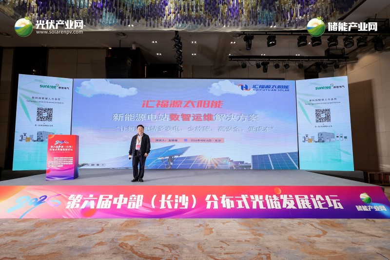 2026年4月16日,第六屆中部(長沙)分布式光儲發(fā)展論壇在湖南長沙圓滿落幕。作為新能源數(shù)智運維標桿企業(yè),四川匯福源太陽能科技有限公司(以下簡稱"匯福源太陽能")驚艷亮相,公司總經(jīng)理龍曉春發(fā)表"匯福源太陽能新能源電站數(shù)智運維解決方案"主旨演講,深度揭秘"1+N"全維度數(shù)智運維新范式。同期,匯福源太陽能展區(qū)人氣爆棚,前沿技術與創(chuàng)新方案備受行業(yè)贊譽,成為本屆論壇焦點。