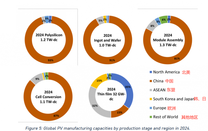 此外,該研究還揭示了一種結(jié)構(gòu)性失衡:中國在整個(gè)硅基光伏價(jià)值鏈的制造環(huán)節(jié)中占據(jù)主導(dǎo)地位,產(chǎn)能占比超過80%。而歐洲雖然保有技術(shù)領(lǐng)先,但缺乏有效競爭所需的產(chǎn)業(yè)規(guī)模及本土市場。