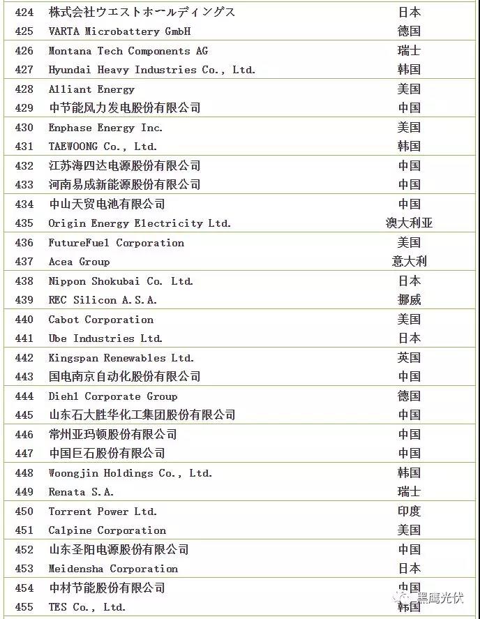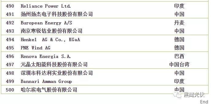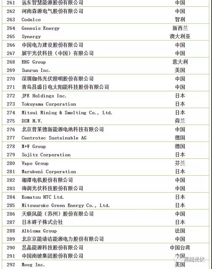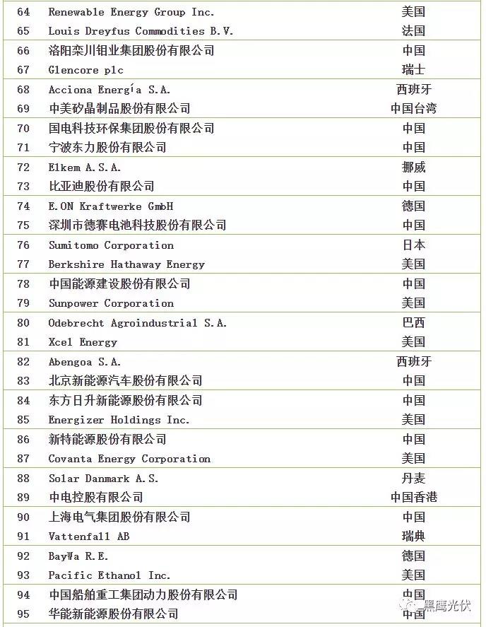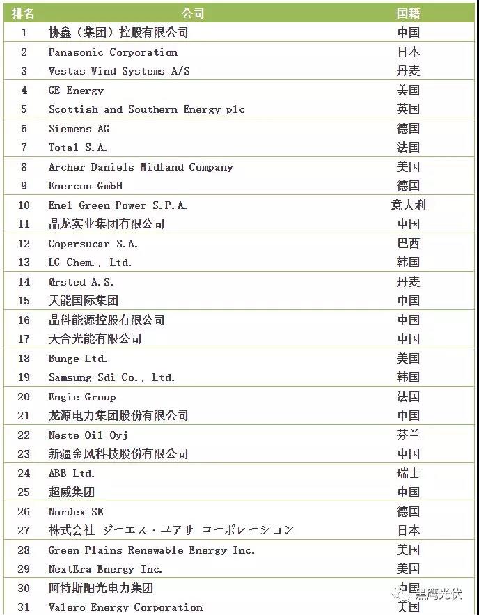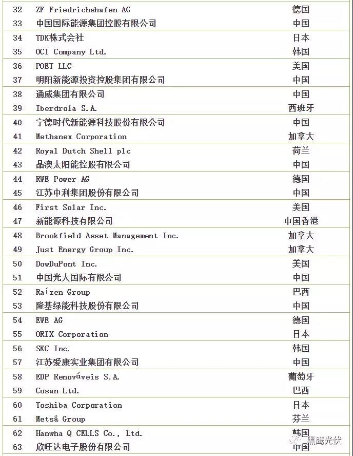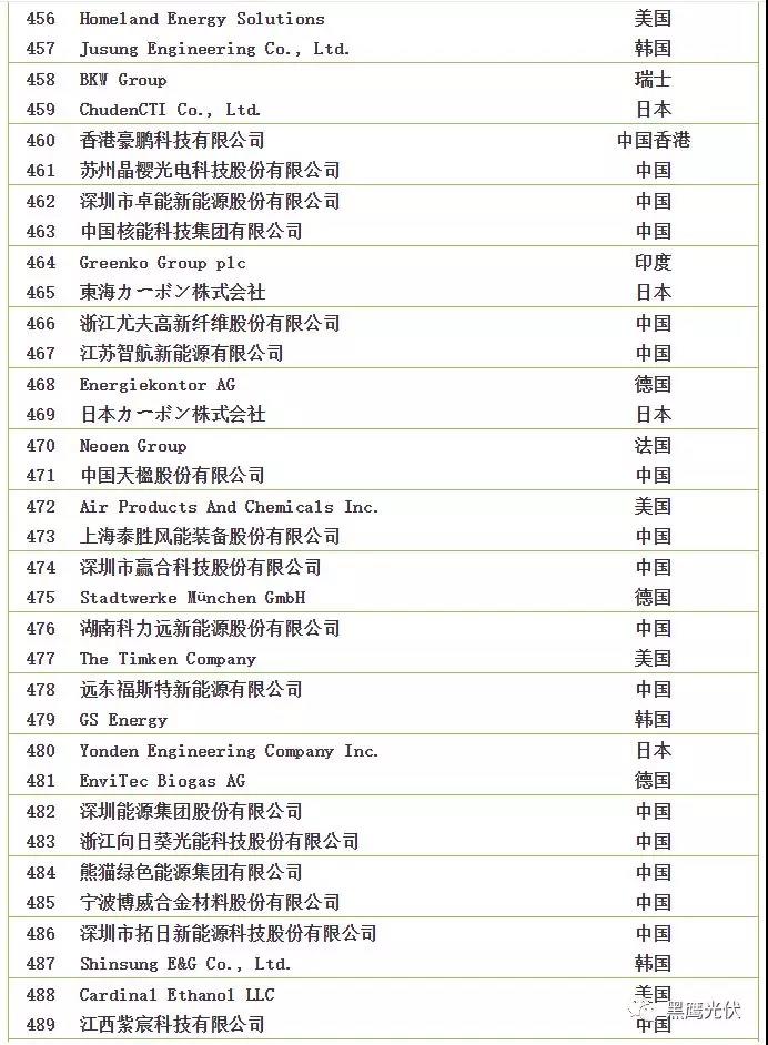 2018全球新能源企業(yè)500強榜單