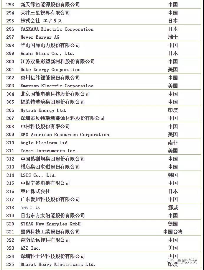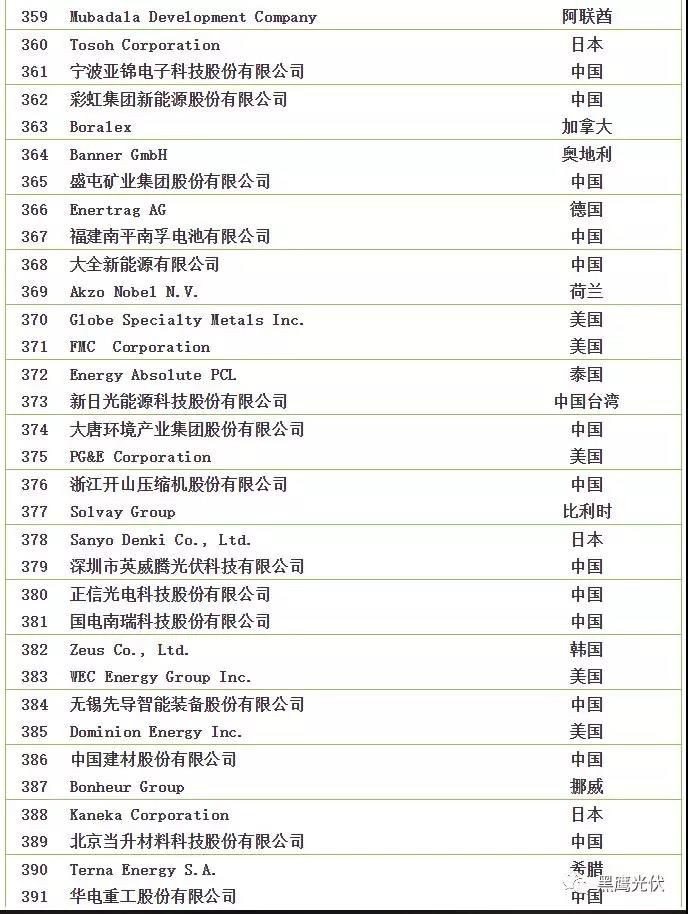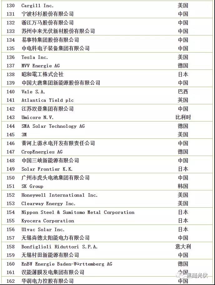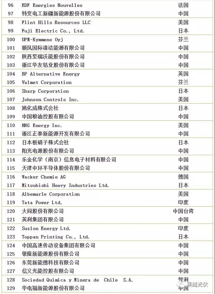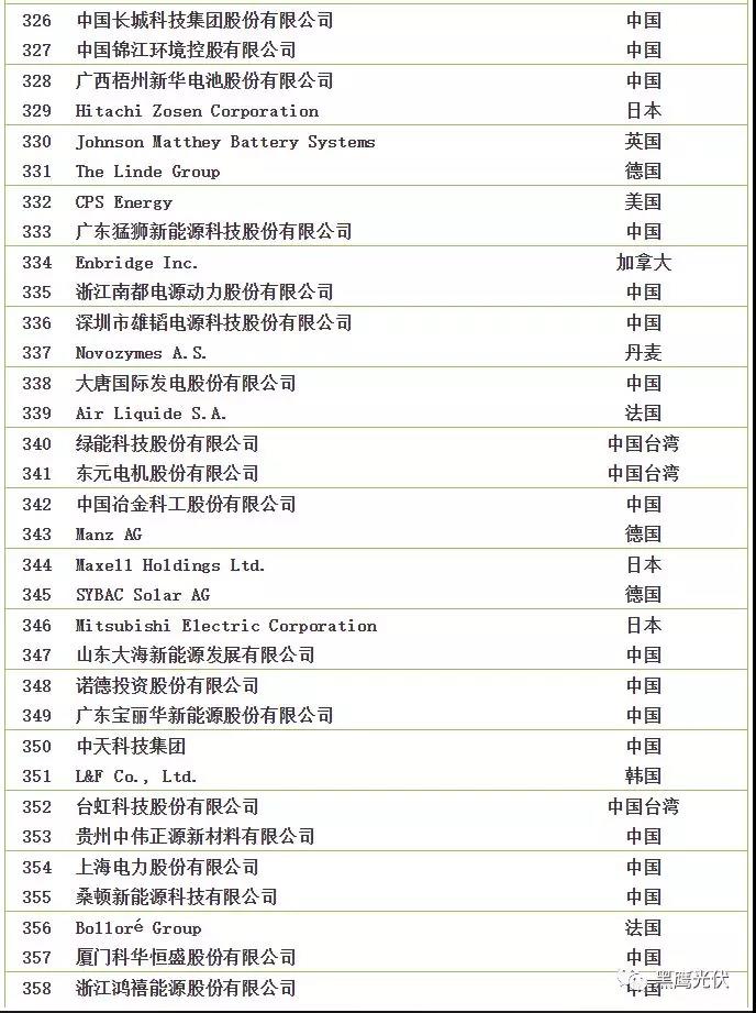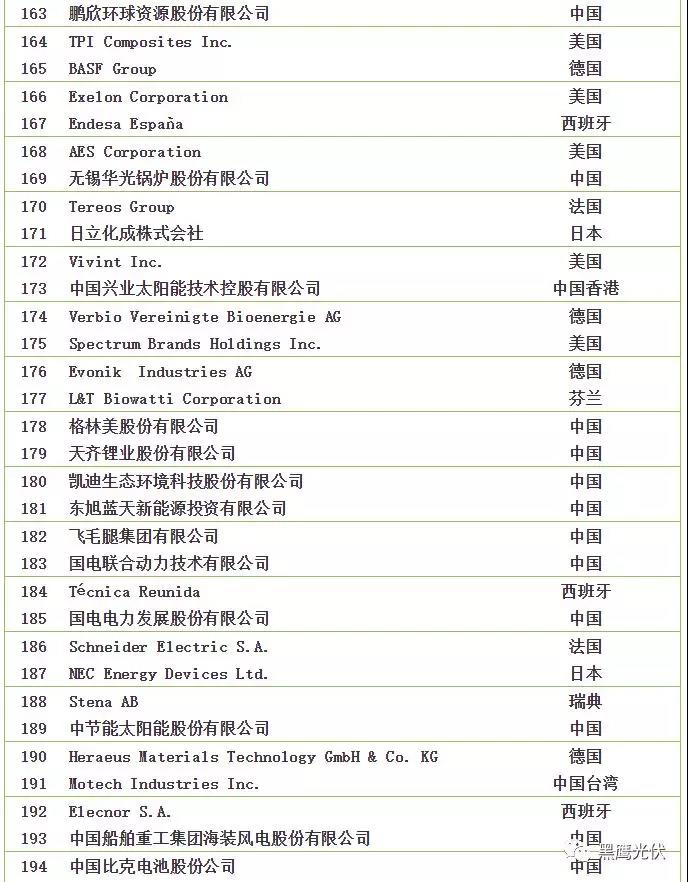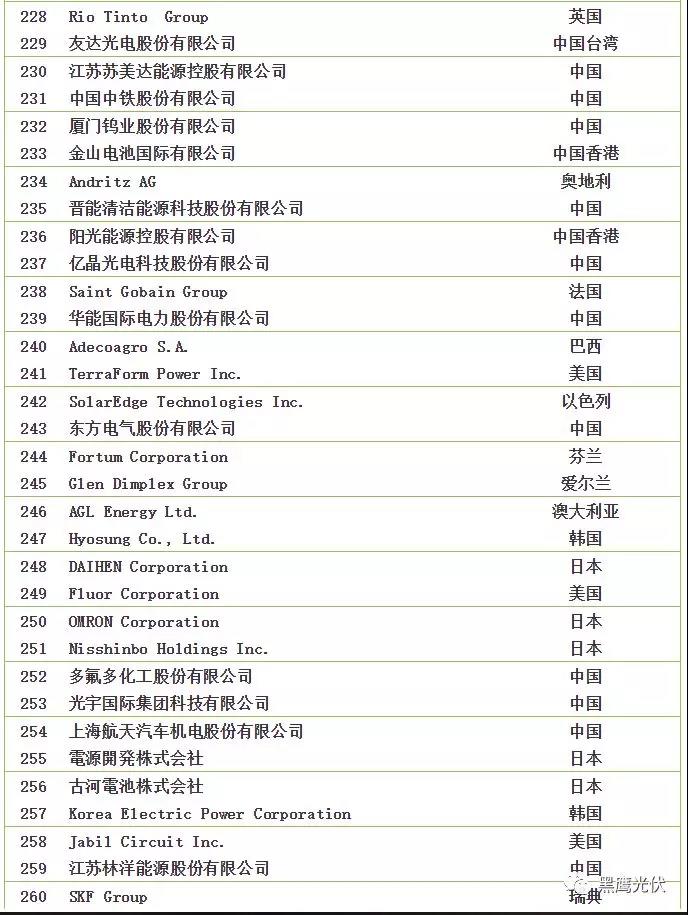 2018全球新能源企業(yè)500強榜單