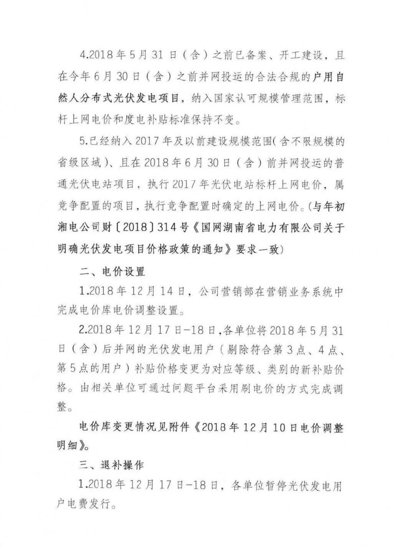 12月10日,國(guó)家電網(wǎng)湖南電力有限公司營(yíng)業(yè)部及財(cái)務(wù)部聯(lián)合下發(fā)關(guān)于光伏發(fā)電補(bǔ)貼調(diào)整執(zhí)行的通知,通知規(guī)定: