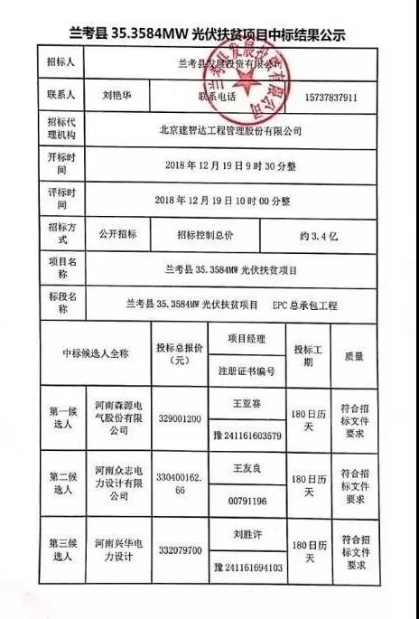 近日了解到,2018年11月21日河南省蘭考縣《蘭考縣公共資源交易中心網(wǎng)》發(fā)布了《蘭考縣35.3584MW