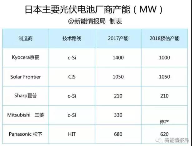 根據(jù)日本2018年11月發(fā)布的《PV Activities in Japan and Global PV Highlights》報告中的數(shù)據(jù),制作了日本主流光伏電池廠商的本土產(chǎn)能數(shù)據(jù)表,希望能對大家有所幫助。