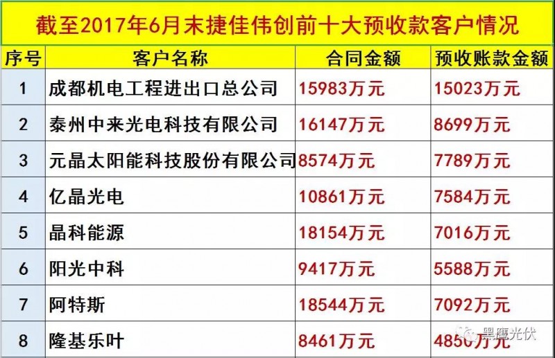 不過,筆者分析了捷佳偉創(chuàng)截至2017年6月末前十大預(yù)收款客戶發(fā)現(xiàn),捷佳偉創(chuàng)對(duì)下游客戶擁有很強(qiáng)的議價(jià)及回款能力,其預(yù)收賬款占合同金額的比例或許遠(yuǎn)高于20%-30%。