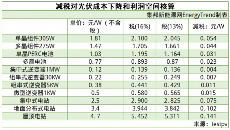 分析:通過減稅,能為光伏產(chǎn)品帶來的實際成本下降和利潤空間計算如下: