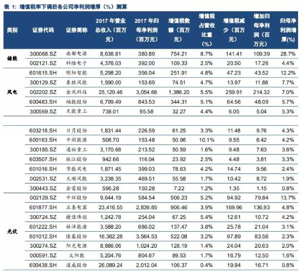 報(bào)告中提出:“深化增值稅改革,將制造業(yè)等行業(yè)現(xiàn)行16%的稅率降至13%,將交通運(yùn)輸業(yè)、建筑業(yè)等行業(yè)現(xiàn)行10%的稅率降至9%,確保主要行業(yè)稅負(fù)明顯降低;保持6%一檔的稅率不變”。增值稅降檔,作為減費(fèi)降稅的重要措施,對(duì)于隸屬于制造業(yè)的新能源行業(yè)來(lái)說(shuō)意義顯著。制造業(yè)稅率將由16%調(diào)低至13%,在所有行業(yè)中降幅最大,將提升新能源制造環(huán)節(jié)的盈利能力。