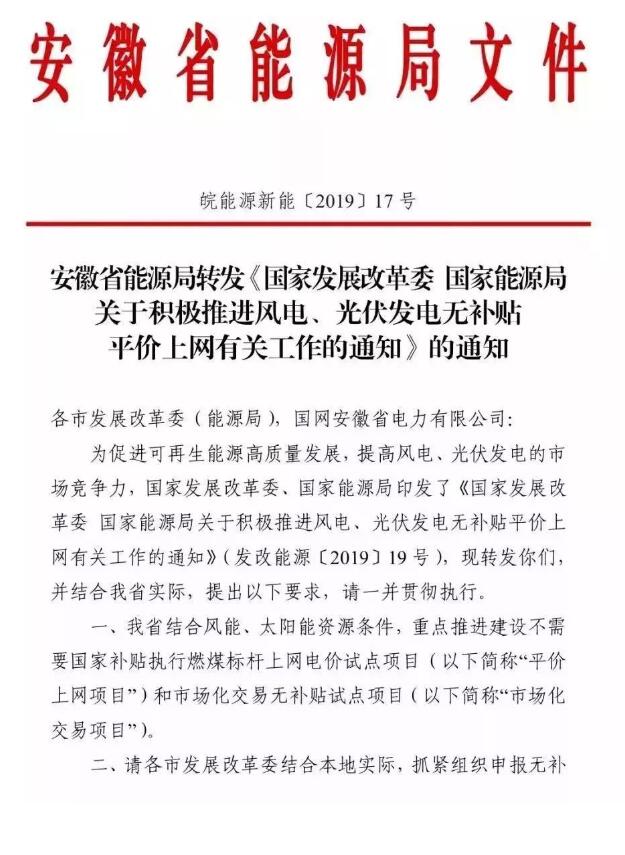 三、安徽:3月20日前上報(bào)光伏發(fā)電平價(jià)上網(wǎng)試點(diǎn)項(xiàng)目