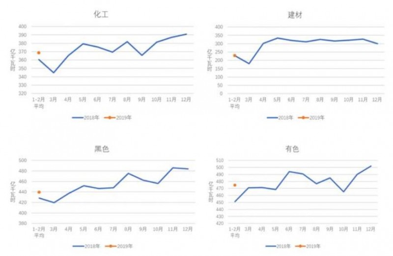 圖3 2018、2019年重點行業(yè)分月用電量情況