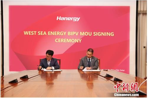 圖:漢能與韓國(guó)West Sea Energy在北京舉行簽約儀式