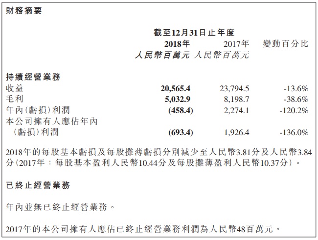 今日,光伏巨頭企業(yè)保利協(xié)鑫公布了2018年財報。財報顯示,保利協(xié)鑫2018年實現(xiàn)收益205.65億元人民幣,同比下降13.6%;毛利50.33億元,同比下降38.6%;與協(xié)鑫新能源并表后,公司擁有人應(yīng)占虧損6.93億元,而上年同期則為盈利19.26億元;每股基本虧損3.81分,不派息。
