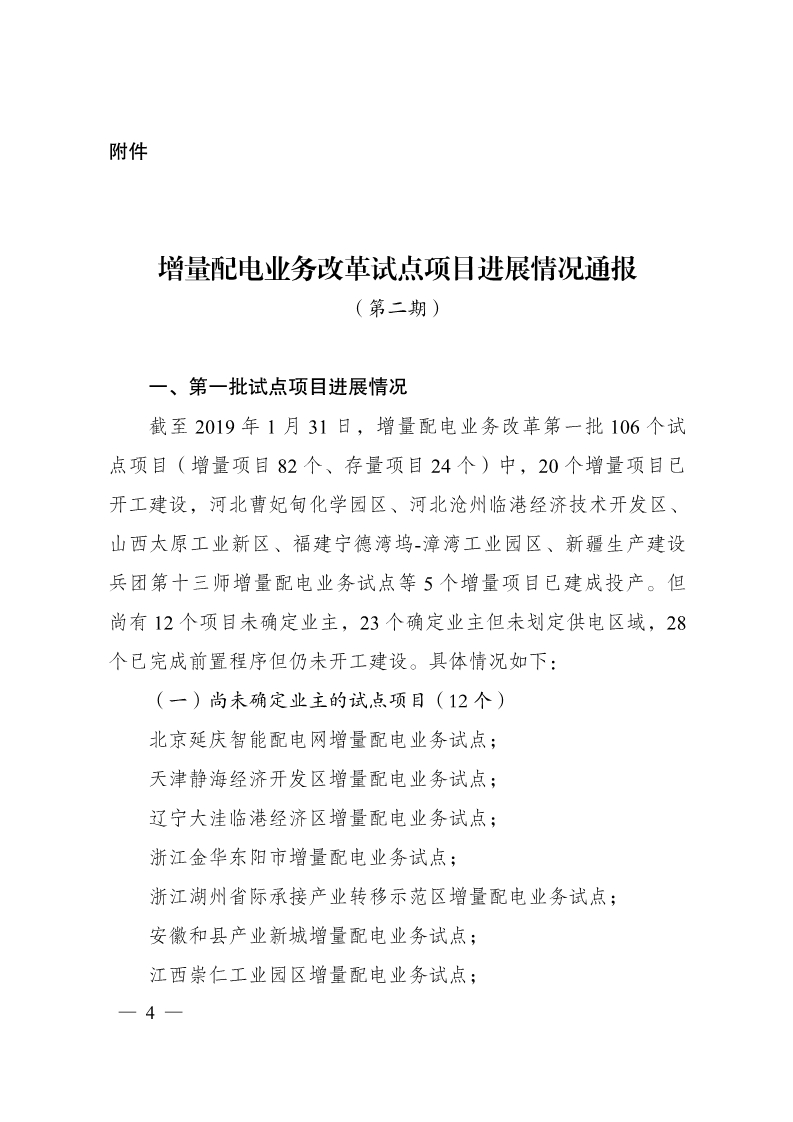 附件:增量配電業(yè)務(wù)改革試點(diǎn)項(xiàng)目進(jìn)展情況通報(bào)(第二期)