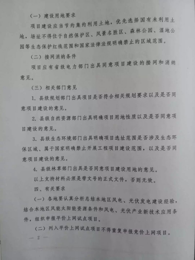 無補貼平價上網(wǎng)試點項目的通知》,要求申報風電試點項目最小規(guī)模為5萬千瓦,申報光伏發(fā)電試點項目最小規(guī)模為10萬千瓦。試點項目要確保在2020年底前核準(備案)并開工建設(shè)。不能按期開工將取消試點項目資格,并在未來兩年內(nèi)黑龍江全省各類風電、光伏項目建設(shè)中不予考慮該投資主體。