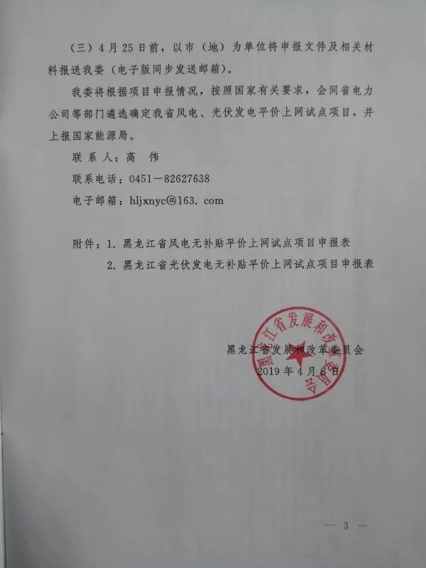 4月8日,黑龍江省發(fā)改委下發(fā)《關(guān)于申報風電、光伏發(fā)電無補貼平價上網(wǎng)試點項目的通知》。