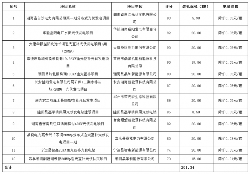 按照《關于梳理“十二五”以來風電、光伏發(fā)電項目信息的通知》(國能綜合函新能[2018]367號)要求,我們梳理了全省“十二五”以來光伏發(fā)電項目情況,對一批存量指標按程序進行了競爭配置,現(xiàn)將項目清單予以公示。公示時間為2019年4月23日—4月25日。在此期間,歡迎社會各界對公示項目以傳真或電子郵件方式向湖南省發(fā)改委提出反饋意見。單位意見必須加蓋單位公章并注明聯(lián)系方式,個人意見必須注明真實姓名、身份證號和聯(lián)系電話。