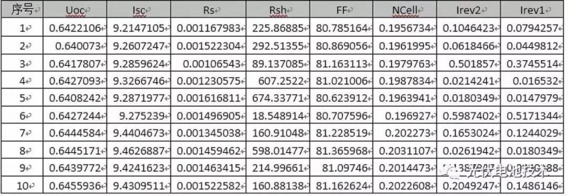 該類異常黑斑,在電性能無明顯體現(xiàn)在FF、Isc、Voc、Rsh上。(說明該類異常片主要非來自正面的影響,切未破壞結區(qū),影響載流子的輸運。)