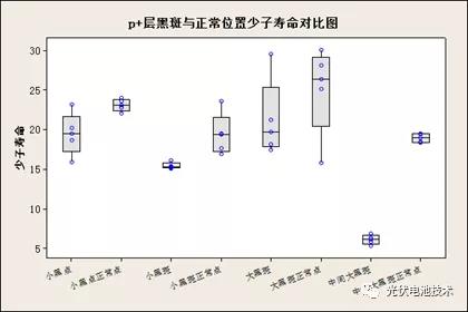 黑斑電池片正常區(qū)域和異常區(qū)域P+層方阻變化不大,說明背場燒結工藝正常,在少子壽命的表現(xiàn)上只有中間大黑斑明顯偏低,而少子壽命偏低主要是受雜質復合影響。因此推論黑點黑斑電池片并非燒結工序所致。