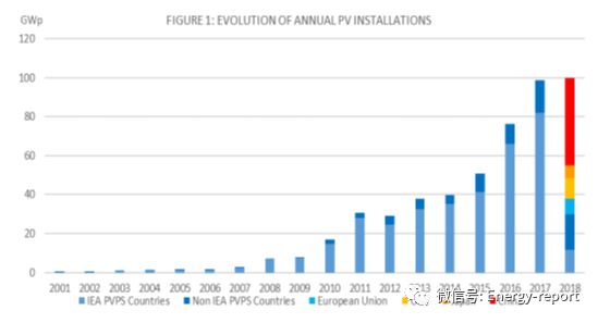 近年來,中國光伏市場的發(fā)展水平在很大程度上推動(dòng)了全球光伏市場的發(fā)展。然而,盡管中國光伏市場在2017年之前一直在增長,但在2018年經(jīng)歷了小幅的下滑。然而,中國光伏市場的這種下滑,并未對全球光伏市場產(chǎn)生較大影響,相反全球光伏市場得到了中國以外地區(qū)更大裝機(jī)容量的補(bǔ)償。2018年中國新增光伏裝機(jī)容量約為45GW,而2017年的新增為53 GW。全球光伏市場呈現(xiàn)穩(wěn)定態(tài)勢,2018年新增裝機(jī)容量為99.8 GW,而2017年新增為98.9 GW。