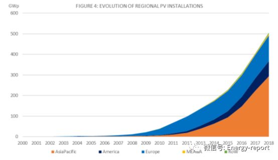 2018年,10個(gè)國家光伏裝機(jī)容量超過GW大關(guān)。目前,8個(gè)國家的總裝機(jī)容量超過10GW,4個(gè)國家超過40GW,僅中國就有176.1GW。德國,這個(gè)多年來一直位居榜首的國家,在2015年失去了它的領(lǐng)先地位,現(xiàn)在排名第四(45.4GW),日本第三(56.0GW),美國第二(62.2GW)。歐洲目前的總裝機(jī)容量超過120.4GW,遠(yuǎn)遠(yuǎn)落后于亞洲的領(lǐng)先水平,后者目前的裝機(jī)容量至少為294.1MW,未來幾年還會(huì)有更多。