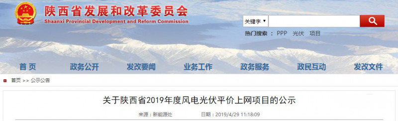 關于陜西省2019年度風電光伏平價上網(wǎng)項目的公示
