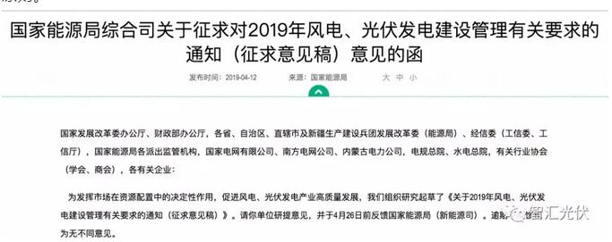 由于國家能源局的文件尚未下發(fā),暫時參考4月12日能源局下發(fā)的征求意見稿中的原則。在這個征求意見稿中,將2019年光伏項目分5類進行管理。