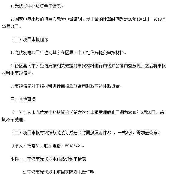 寧波市光伏發(fā)電補貼資金 (第六次)申報工作的通知。