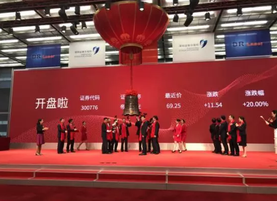 武漢帝爾激光科技股份有限公司周五上市掛牌儀式在深圳證券交易所舉行,股票簡(jiǎn)稱“帝爾激光”,股票代碼“300776”,保薦機(jī)構(gòu)和主承銷商為長(zhǎng)江證券承銷保薦有限公司。本次公開(kāi)發(fā)行股票總數(shù)量1,653.60萬(wàn)股,發(fā)行價(jià)格為57.71元/股,新股募集資金總額為95,429.26萬(wàn)元。隨著開(kāi)市寶鐘的敲響,帝爾激光正式登陸A股市場(chǎng),開(kāi)啟資本市場(chǎng)新征程。