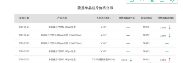 隆基:單晶硅片國內價格不變,海外下調2.41%!