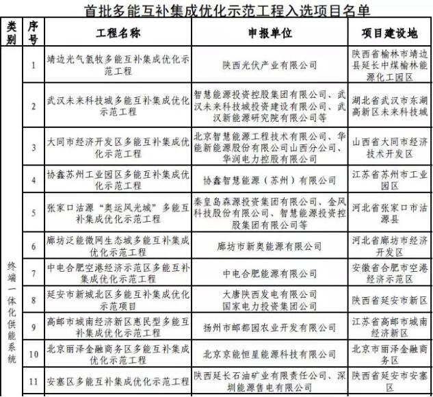 附件:首批多能互補集成優(yōu)化示范工程入選項目名單