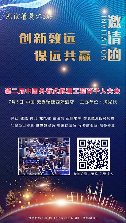 在此背景下,由淘光伏主辦的2019第二屆中國(guó)分布式光伏工程商千人大會(huì)暨淘能杯2018中國(guó)分布式光伏優(yōu)秀品牌頒獎(jiǎng)典禮將于2019年7月5日在江蘇省無(wú)錫市瑞廷西郊酒店(五星級(jí))舉辦,屆時(shí)將有500+光伏及儲(chǔ)能等新能源行業(yè)一線工程商、經(jīng)銷(xiāo)商、服務(wù)商、集成商、安裝商、開(kāi)發(fā)商、投資商、EPC公司、設(shè)計(jì)院、設(shè)備商相聚無(wú)錫,主辦方將邀請(qǐng)新能源行業(yè)資深專家對(duì)2019光伏最新政策進(jìn)行深度解讀,共同探討2019中國(guó)分布式光伏發(fā)展前景和應(yīng)對(duì)措施,提振廣大光伏人信心,提前布局,順勢(shì)而為,相互交流,結(jié)識(shí)人脈,資源對(duì)接,為中國(guó)分布式光伏持續(xù)健康發(fā)展保駕護(hù)航!