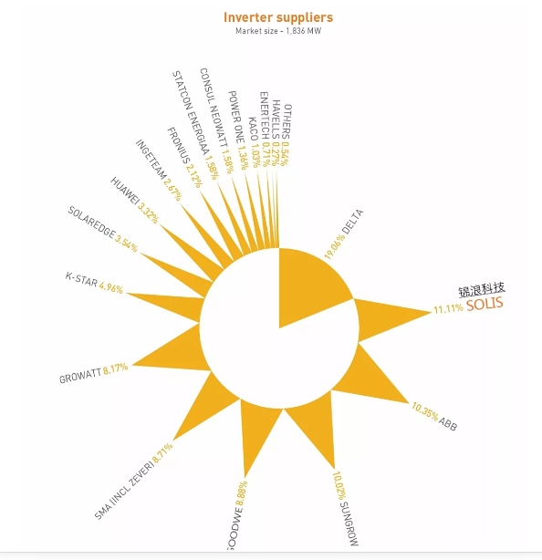 (逆變器供應(yīng)商市場(chǎng)占比,來(lái)源:BridgetoIndia)