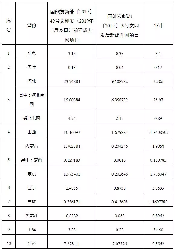 附表:納入2019年國家財政補貼規(guī)模戶用光伏項目裝機容量統(tǒng)計表(截至2019年6月30日)