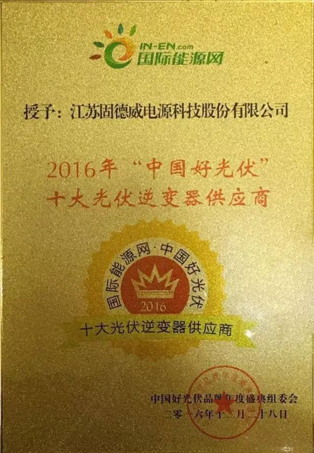 在過(guò)去的日子里,固德威依托技術(shù)研發(fā),碩果累累,先后榮獲政府列名“高新技術(shù)企業(yè)”、“省工程技術(shù)中心”、“省博士后創(chuàng)新基站”、“省研究生工作站”、光能雜志“中國(guó)十佳逆變器企業(yè)”、北極星“中國(guó)十佳逆變器品牌”、“中國(guó)十大逆變器品牌”、“SNEC兆瓦級(jí)金獎(jiǎng)”、及“蘇州市科學(xué)技術(shù)局光伏并網(wǎng)逆變器研究中心”等榮譽(yù)稱號(hào)。