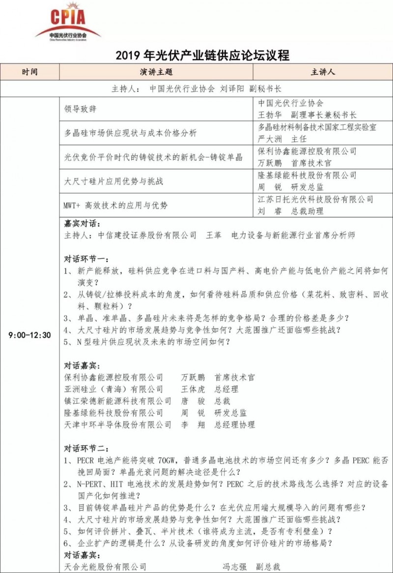 2019年光伏產(chǎn)業(yè)鏈供應(yīng)論壇最新日程公布