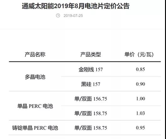近一段時(shí)間以來,單晶PERC電池片在7月需求下降、同時(shí)新增產(chǎn)能大量釋放的情況下,供過于求的情形快速顯現(xiàn),價(jià)格連跌數(shù)周,已經(jīng)跌至PERC舊產(chǎn)線的成本線。