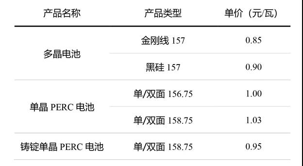 156.75尺寸單晶PERC電池跌至1元/瓦,較上月下降13.8%;