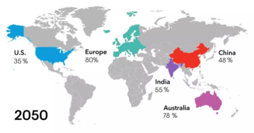 與此同時,印度將建設(shè)超過1500GW的可再生能源發(fā)電,其中光伏占70%。到2050年,零碳技術(shù)將為印度67%的電力供應(yīng)。