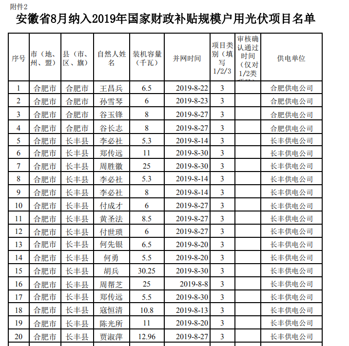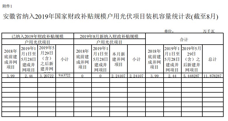 原標題:安徽省納入2019年國家財政補貼規(guī)模戶用光伏項目情況-截至2019年8月