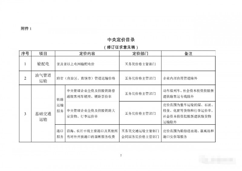 附件:1.《中央定價(jià)目錄》(修訂征求意見稿)