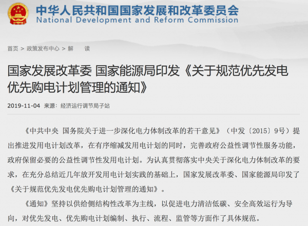 11月4日,國家發(fā)展改革委、國家能源局聯(lián)合印發(fā)《關(guān)于規(guī)范優(yōu)先發(fā)電優(yōu)先購電計(jì)劃管理的通知》(以下簡稱《通知》),從五方面對完善優(yōu)先發(fā)電、優(yōu)先購電制度予以安排: