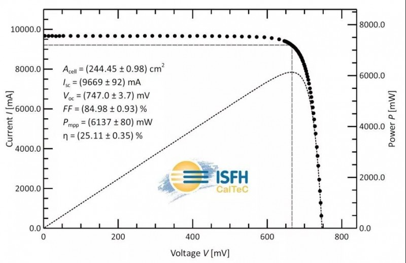 我們這次的重心是改善電池鈍化層的性能和它的界面特性,提升電池的開路電壓,同時短路電流和填充子也略有提升。我們也改善了微晶硅摻雜層和透明導電膜的接觸特性。在這種情況下,電池效率比之前的24.85%提高到25.11%。