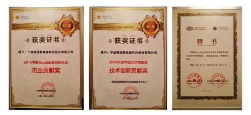 2017年1月9日-10日,由中國光伏領(lǐng)跑者創(chuàng)新論壇主辦,中國光伏測(cè)試網(wǎng)、上海太陽能學(xué)會(huì)、中國質(zhì)量認(rèn)證中心技術(shù)支持的“2016光伏領(lǐng)跑者創(chuàng)新總論壇暨首屆中國光伏領(lǐng)跑者創(chuàng)新年會(huì)”在江蘇常州順利舉行。1月9日晚年會(huì)頒獎(jiǎng)典禮上,錦浪科技憑借全新第四代逆變器技術(shù)平臺(tái),榮獲“2016年度中國光伏領(lǐng)跑者技術(shù)創(chuàng)新貢獻(xiàn)獎(jiǎng)”,憑借錦浪組串式逆變器產(chǎn)品的高可靠性和科技創(chuàng)新精神,榮獲“2016中國光伏領(lǐng)跑者創(chuàng)新論壇杰出貢獻(xiàn)獎(jiǎng)”。