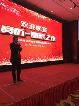 頒獎(jiǎng)晚宴上,寧波錦浪科技總經(jīng)理王一鳴先生作致辭:“嶄新的2017年,祝愿勤勞智慧的光伏人事業(yè)發(fā)達(dá),讓我們一起擼起袖子,加油干”。錦浪科技還帶來了精彩的沙畫表演《錦浪的藍(lán)天夢(mèng)》,給年會(huì)晚宴助興,創(chuàng)新的節(jié)目得到了與會(huì)嘉賓的好評(píng)。