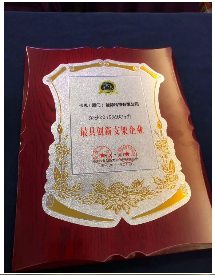 2019年11月27日,「PV TOP 50」2019光伏行業(yè)創(chuàng)新力企業(yè)50強(qiáng)榜單發(fā)布暨頒獎(jiǎng)典禮(PV TOP 50光伏創(chuàng)新榜)在蘇州圓滿落下帷幕!卡思能源受邀出席,并榮獲“「PV TOP 50」2019光伏創(chuàng)新榜最具創(chuàng)新支架企業(yè)”稱號(hào)。此次獲獎(jiǎng)是對(duì)卡思能源技術(shù)創(chuàng)新及產(chǎn)品研發(fā)能力的充分肯定。