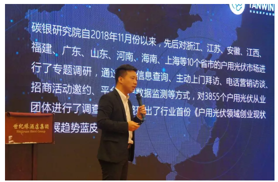 碳銀高級運營經(jīng)理鄭海華講解了由碳銀研究院發(fā)布的行業(yè)首份《戶用光伏領(lǐng)域創(chuàng)業(yè)現(xiàn)狀與趨勢藍皮書》。他講到,在行業(yè)退補加快,平價上網(wǎng)即將來臨的大趨勢下,清潔能源領(lǐng)域的從業(yè)者們應(yīng)該專注于自身擅長的事情,積極求新求變,把不擅長的環(huán)節(jié)交給專業(yè)平臺,實現(xiàn)平價上網(wǎng)時代的業(yè)務(wù)飛躍。