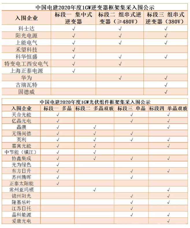 本次招標(biāo)按各標(biāo)段分別確定2020年入圍供應(yīng)商,并簽訂框架協(xié)議,框架協(xié)議有效期截至2020年12月31日。除有特殊情況外,中國(guó)電建所屬各成員企業(yè)將在項(xiàng)目落地、具體采購(gòu)需求明確后,根據(jù)此次招標(biāo)結(jié)果,直接邀請(qǐng)全部或部分入圍供應(yīng)商通過(guò)競(jìng)爭(zhēng)性談判或詢價(jià)等二次競(jìng)爭(zhēng)方式,確定其所需光伏組件、逆變器的最終成交單位,并簽訂采購(gòu)合同,不再另行單獨(dú)招標(biāo)。