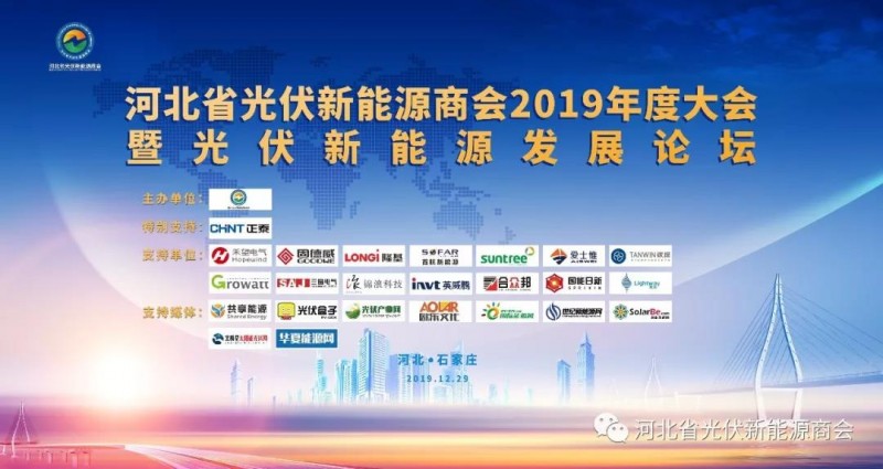 河北省光伏新能源商會2019年度大會暨光伏新能源發(fā)展論壇是一場年度工作總結(jié)分析會,也是對明年建設(shè)的部署動員會;是一場行業(yè)發(fā)展研討分享會,也是對未來市場的前景展望會;河北省光伏新能源商會將始終堅持以習(xí)近平新時代中國特色社會主義思想為指導(dǎo),深入貫徹落實黨的十九大、十九屆四中全會精神,牢固樹立“四個意識”,堅定“四個自信”,做到“兩個維護”,持續(xù)推進主題教育扎實開展,不斷提升黨建工作質(zhì)量,強化黨員意識,增強黨的觀念,提高黨性修養(yǎng),不斷增強黨支部的凝聚力和戰(zhàn)斗力,不斷完善商會職能,有效開展各種服務(wù)活動,扎實打基礎(chǔ),勤奮干工作,為推動光伏新能源產(chǎn)業(yè)發(fā)展獻計獻策,助推光伏新能源在更廣泛的市場和環(huán)境應(yīng)用,為打贏脫貧攻堅戰(zhàn)、藍天保衛(wèi)戰(zhàn),建設(shè)經(jīng)濟強省、美麗河北做出積極的貢獻。