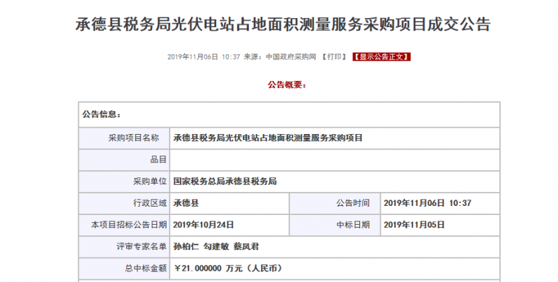 近日,從政府采購網(wǎng)站上了解到,某地稅務(wù)局已通過公開招標(biāo)手段完成當(dāng)?shù)毓夥娬菊嫉孛娣e的測量,中標(biāo)價21萬。