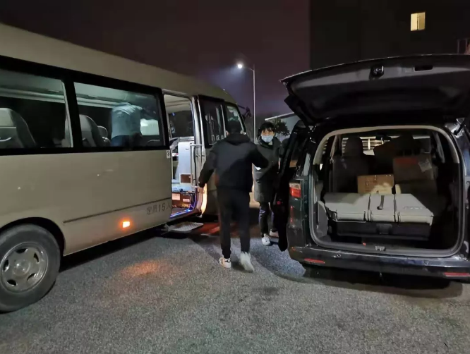 2月2日深夜。載著防疫物資的車輛從上海一路披星戴月抵達(dá)溫州樂清。交接、卸貨、清點(diǎn)……忙完已是凌晨1點(diǎn)。這批物資被樂清疾控中心接收后,第一時(shí)間送往當(dāng)?shù)馗鞔蠓酪叨c(diǎn)醫(yī)院。