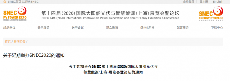 關(guān)于延期舉辦SNEC第十四屆(2020)國際太陽能光伏與智慧能源(上海)展覽會(huì)暨論壇的通知
